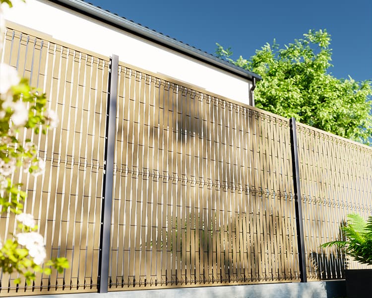 El kit Akido de ocultación para vallas rígidas de composite se beneficia de la experiencia de Fiberdeck en la extrusión de madera composite de alta calidad. La madera composite que compone las lamas está cepillada para un acabado natural y de alta calidad. Su resistencia a la intemperie las convierte en un aliado ideal para las vallas rígidas. Las lamas están disponibles en tres colores para combinar con cualquier exterior.